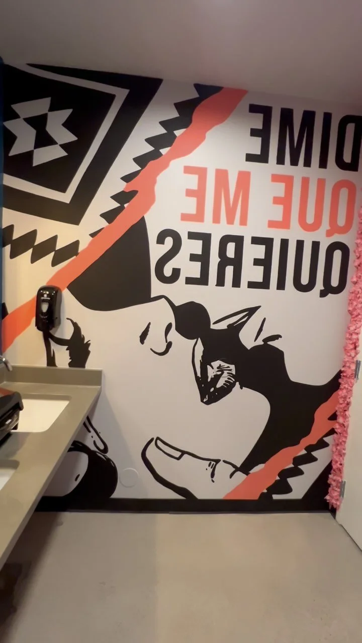 Several printed photographs of young women posing in various outfits are scattered on a surface, with some images showing women sitting or standing against a pink or neutral background. The word "bunny" is visible on some images and on a sign in the background.