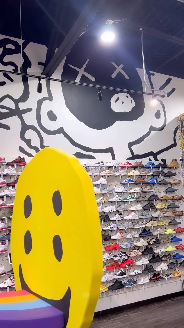 A collage of various stickers and illustrations, including pink donuts with bites taken out, yellow smiley faces with marijuana leaf eyes, black faces with white eyes, blue characters with pink tongues, a white bunny, and multiple 'thank you' messages. Some stickers have a street art or graffiti style, and there are additional graphics like grass backgrounds, smoke clouds, and a small top hat on the yellow smiley face.