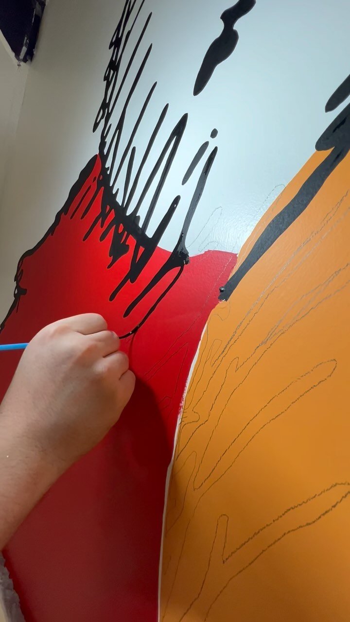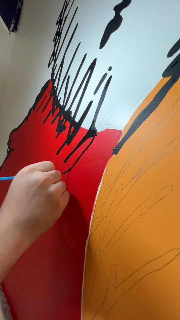 A white table with folded clothing, including gray, black, white, and maroon long-sleeve shirts, with a pink overlay with the text 'THND'. There is a marijuana-themed shirt with a large leaf and a rocky background, a small round container with a cannabis leaf logo, and a lit cannabis joint on the table.